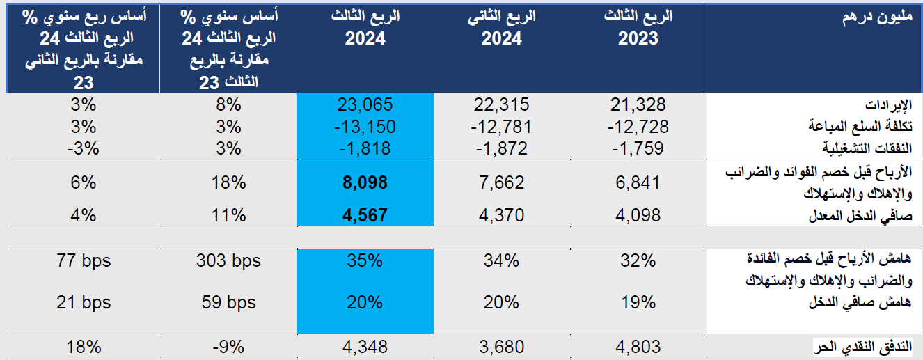 • إرتفاع صافي الدخل ليصل إلى 4.552 مليار درهم (1.24 مليار دولار) بنسبة زيادةٍ بلغت 11% على أساس سنوي متجاوزاً توقعات السوق